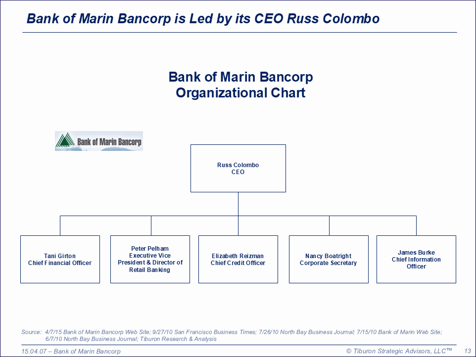 Bank of Marin Bancorp was founded in 1989 & is led by its CEO Russ Colombo.