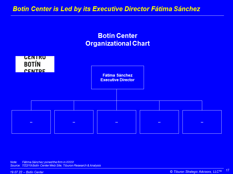 Botín Center was founded by the Fundación Botín in 2017. Botín Center is led by its Executive Director Fátima Sánchez.