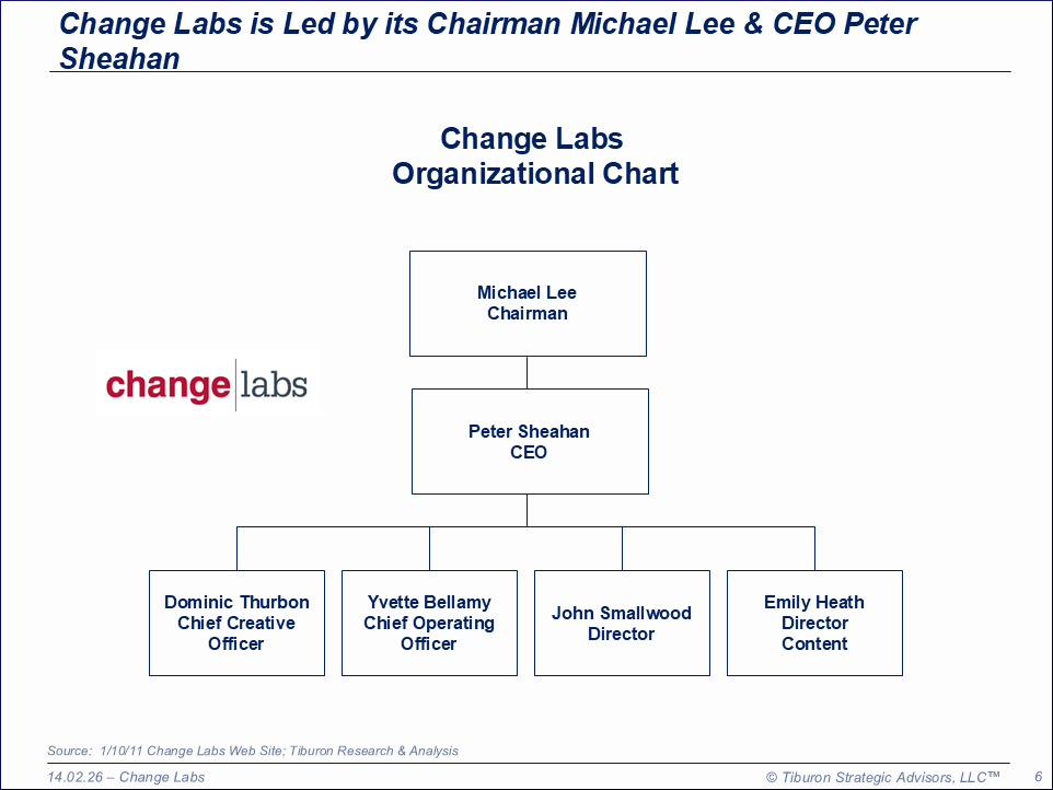 Change Labs was founded by Peter Sheahan in 2000 and is based in Sydney, Australia. The company is led by its Chairman Michael Lee & CEO Peter Sheahan. Its web site can be found at www.changelabs.net.
