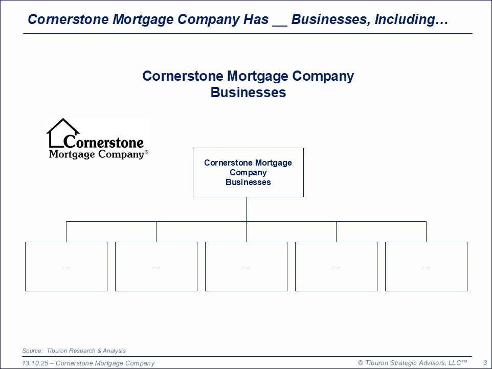 Cornerstone Mortgage Company's comprehensive Power Point deck below includes a synopsis of its history, including its key phases: