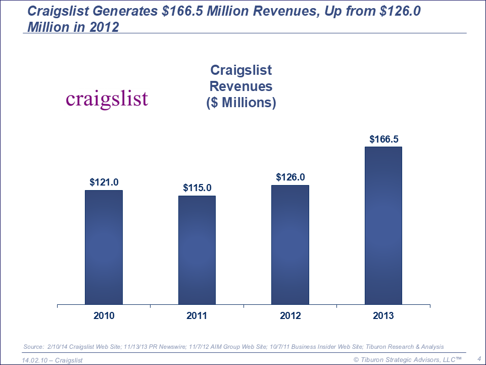 Craigslist's comprehensive Power Point deck below includes a synopsis of its history, including its key phases: >