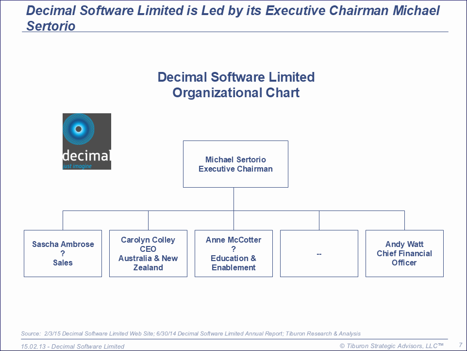 Decimal Software Limited was founded by Jan Kolbusz in 2006 and is based in Perth, Australia. It has two offices and 27 employees. It is led by its Executive Chairman Michael Sertorio. Its web site can be found at www.decimal.com.