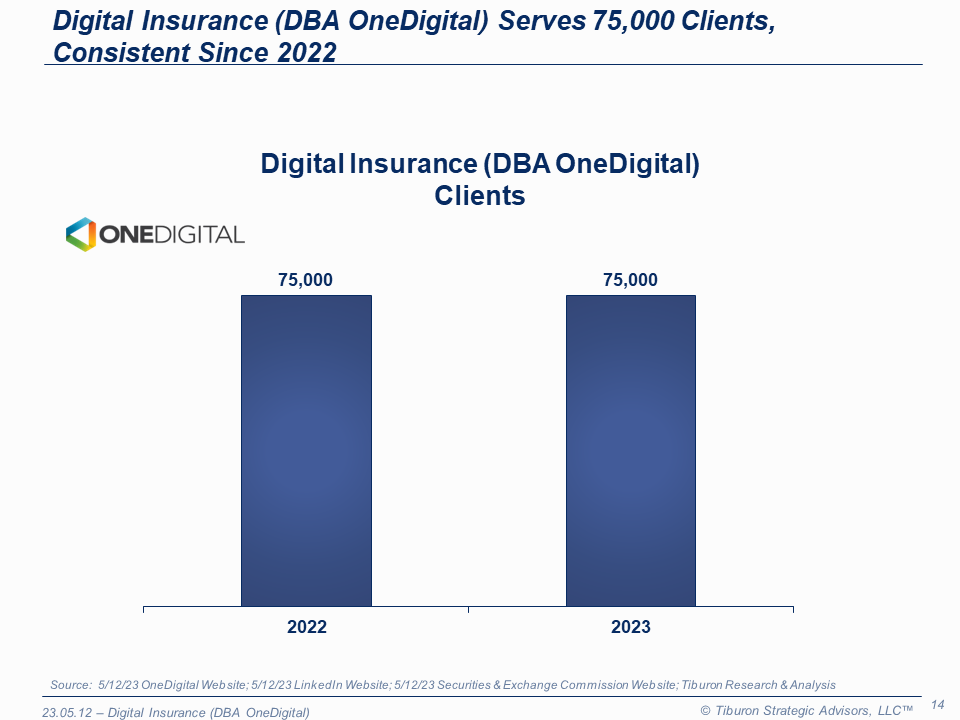 Its profile includes the key statistics of the Digital Insurance (DBA OneDigital), including its number of offices, employees, & clients.