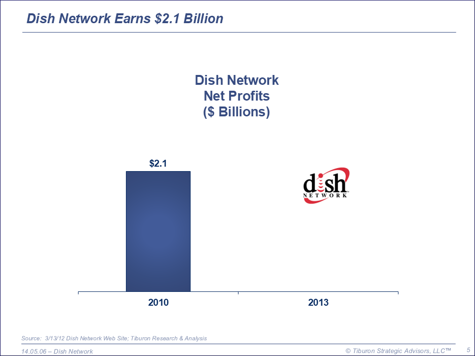 Dish Network's comprehensive Power Point deck below includes a synopsis of its history, including its key phases: