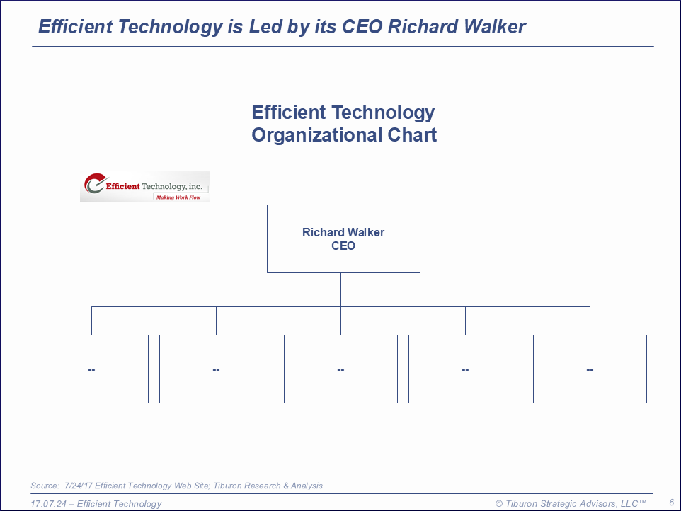 Efficient Technology was founded in 1996. The company is based in Torrance, CA and led by its CEO Richard Walker. Its web sites can be found at www.efficienttech.com, www.quikforms.com, http://www.quikenterprises.com, & www.quikprofessionals.com.