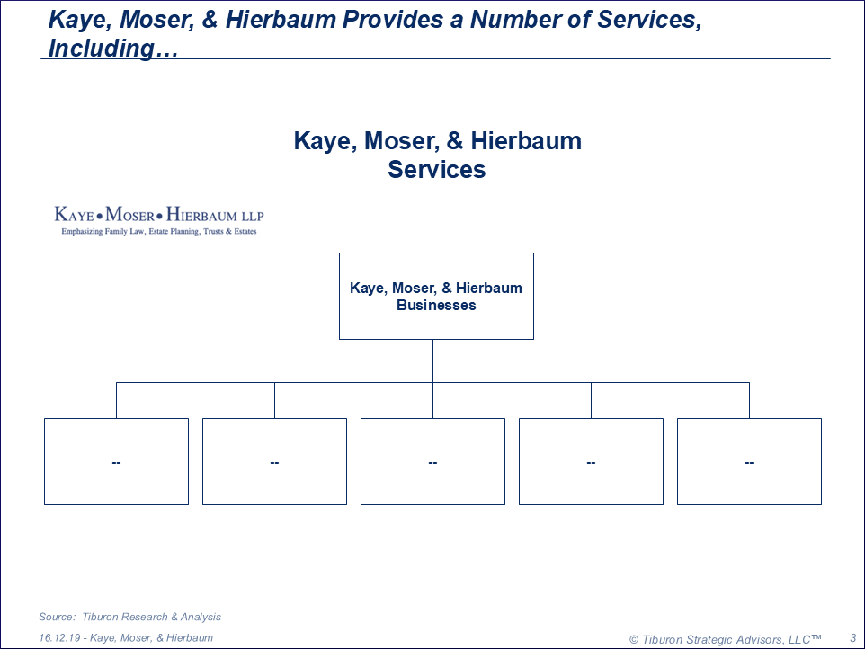 Kaye, Moser, & Hierbaum was founded in 1995. The company is based in San Francisco, CA and led by its Partners Barbara Moser, Susan Kaye, Vanessa Hierbaum, & Laura Cronin Ford. Its web site can be found at www.kayemoser.com.