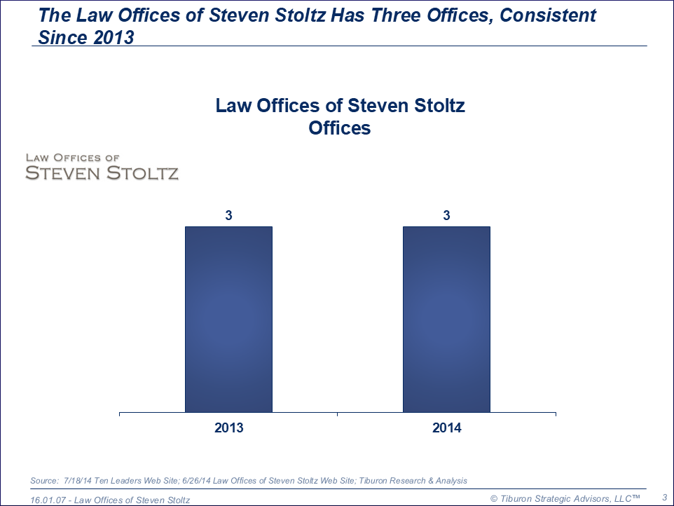 The Law Offices of Steven Stoltz was founded by Steven Stoltz in 1980 and is based in San Francisco, CA. The firm has three offices, three employees, and is led by its Partner Steven Stoltz. Its web site can be found at www.stevenstoltzfamilylaw.com.