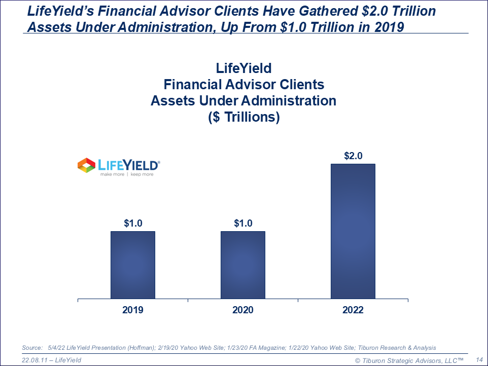 LifeYield was founded by Mark Hoffman, Michael Benedek, & Paul Samuelson in 2008. LifeYield is based in Boston, MA. LifeYield has one office & 100,000 financial advisor clients. LifeYield is led by its CEO Mark Hoffman & President Michael Benedek. LifeYield is privately owned. Its web site can be found at www.LifeYield.com.