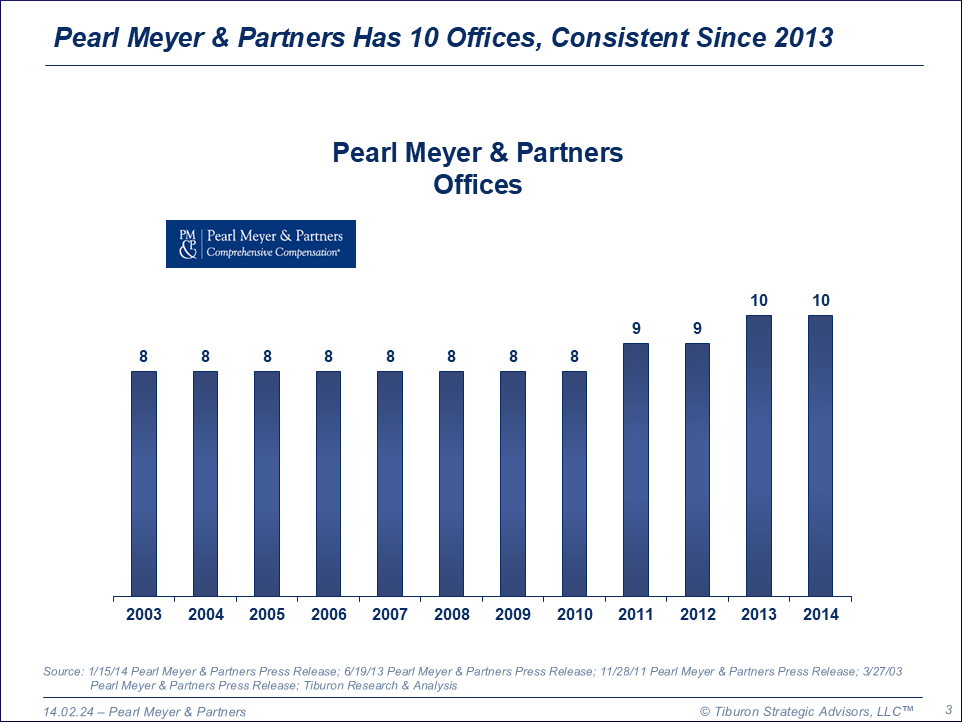 Pearl Meyer & Partners was founded by Pearl Meyer in 1989 and is based in New York, NY. It has 10 offices and 100 employees. The firm is led by its CEO David Swinford. Its web site can be found at www.pearlmeyer.com.