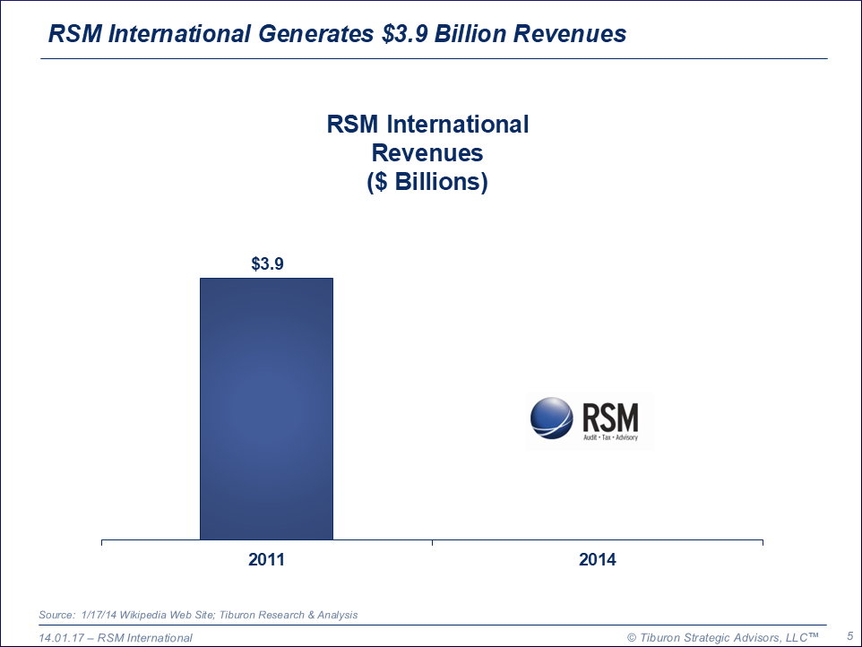 RSM International was founded by 1964 and is based in London, England. It has 702 offices, 32,757 employees, & generates $3.7 billion revenues. The firm is led by its CEO Jean Stephens. Its web site can be found at www.rsmi.com.