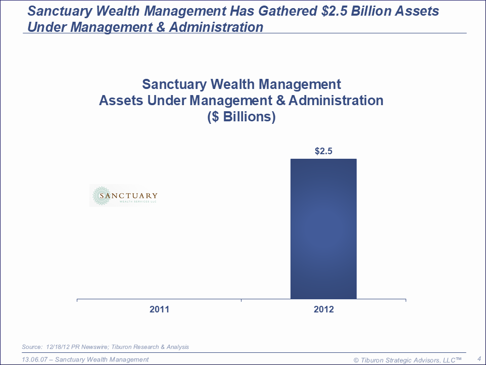 Sanctuary Wealth Management was founded by Randall Baum, Keith Ogden, & Jeff Spears in 2008 and is based in San Francisco, CA. Sanctuary Wealth Management is led by its Chairman Craig Johnson and CEO Jeff Spears. Sanctuary Wealth Management's web site can be found at www.sanctuaryws.com.