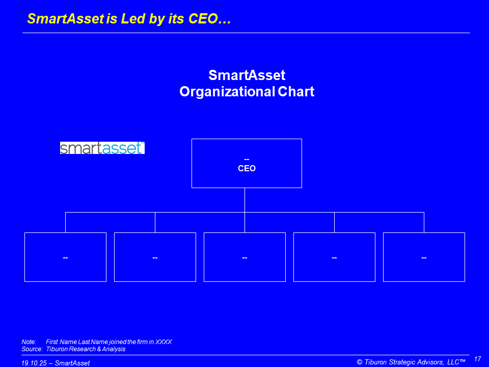 SmartAsset was founded in XXXX. SmartAsset is led by its CEO. Its web site can be found at www.SmartAsset.Com