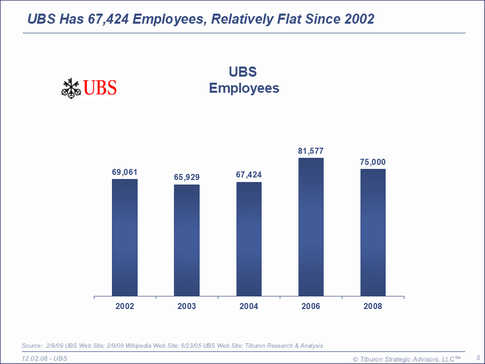 UBS was founded in 1872 and is based in Zurich, Switzerland. UBS serves 50 countries, has 75,000 employees, $2.0 trillion assets, generates $37.0 billion revenues, earns -$4.7 net profits and is led by its Chairman Peter Wuffli. UBS' web site can be found at www.ubs.com.