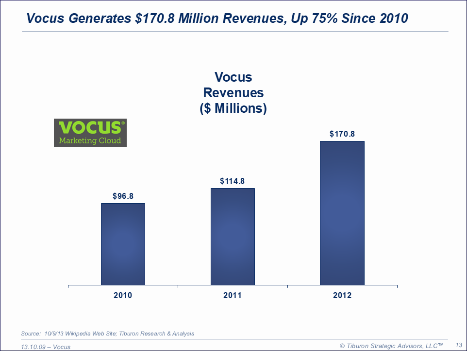 Vocus was founded by Rick Rudman & Bob Lentz in 1992 and is based in Beltsville, MD. Vocus has six offices, 1,200 employees, $170.8 million revenues, and is led by its CEO Richard Rudman. Vocus is a public company trading on the NASDAQ under VOCS. Its website can be found at www.vocus.com.