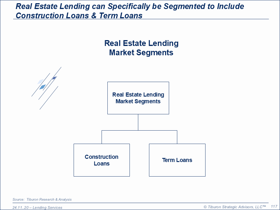 This research defines key distinct market segments of real estate lending, including: