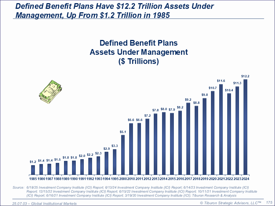 The purpose of this research is to provide readers with a comprehensive understanding of defined benefit plans, including corporate, union (Taft-Hartley), and state & local government plans. While growth has stagnated, defined benefit plans are a substantial market. This research is part of Tiburon's broader coverage of retirement plans and its even broader coverage of the institutional markets.