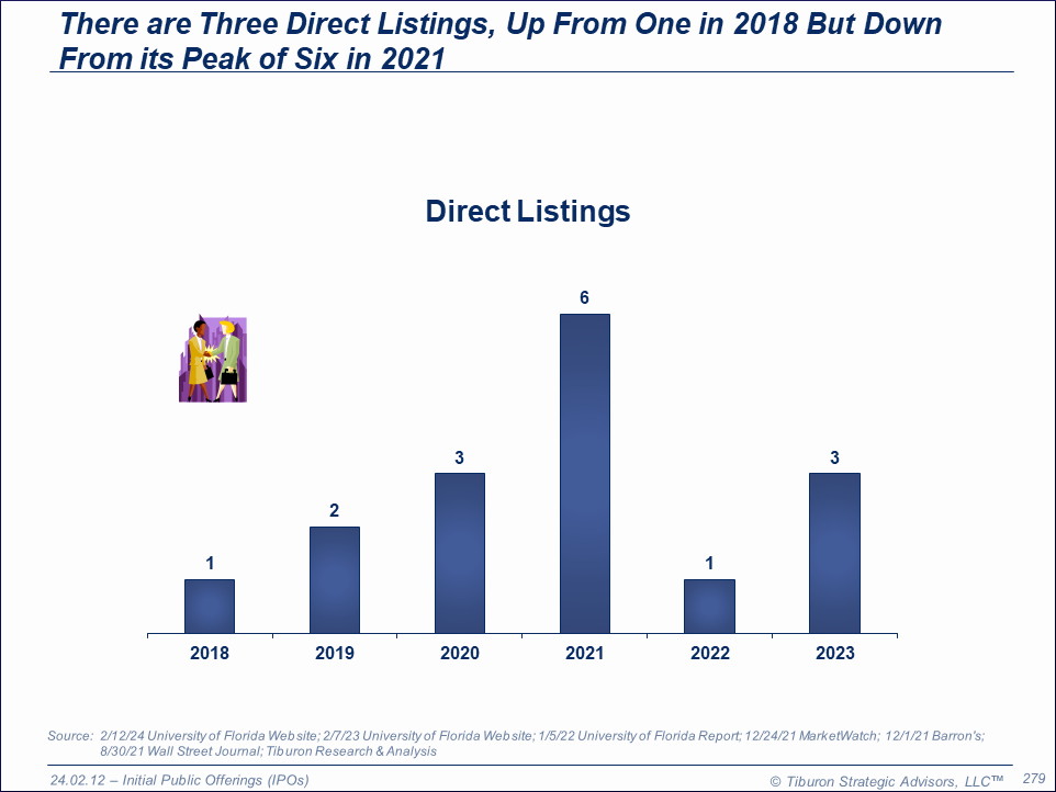 The purpose of this research is to provide readers with a comprehensive understanding of direct listings. This research is part of Tiburon's broader coverage of initial public offerings (IPOs), its even broader broader coverage of public offerings, and its even broader coverage of investment opportunities.